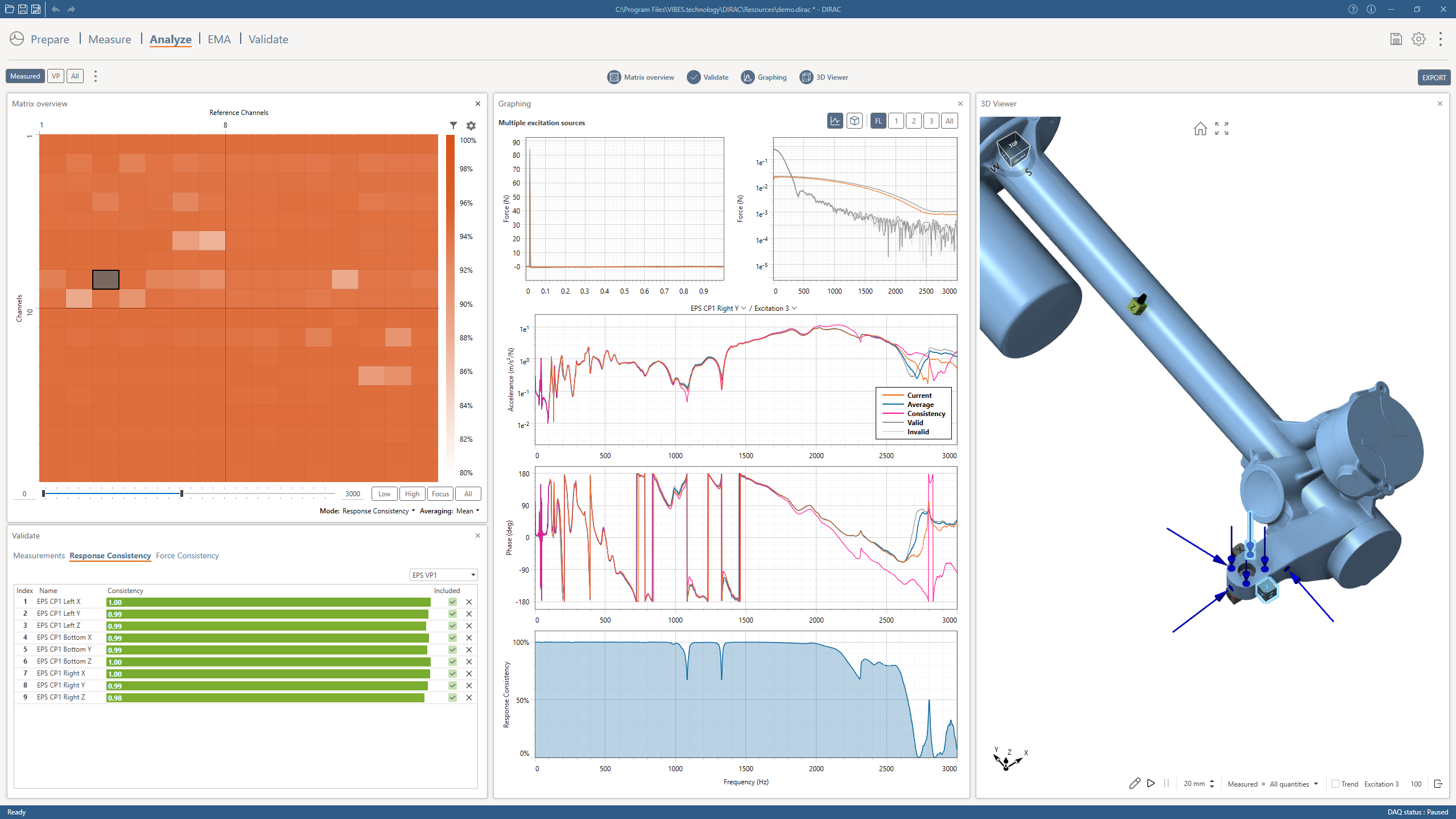 High-quality FRF measurements are the foundation of reliable test-based models — yet acquiring them is time-consuming, costly, and vulnerable to errors that only surface late in the workflow. Even experienced engineers can lose valuable insight through sub-optimal design of experiment, inconsistent measurements, or limited use of the data afterwards. DIRAC reduces these risks by helping you acquire trustworthy FRF data and extract more value from every measurement and model.