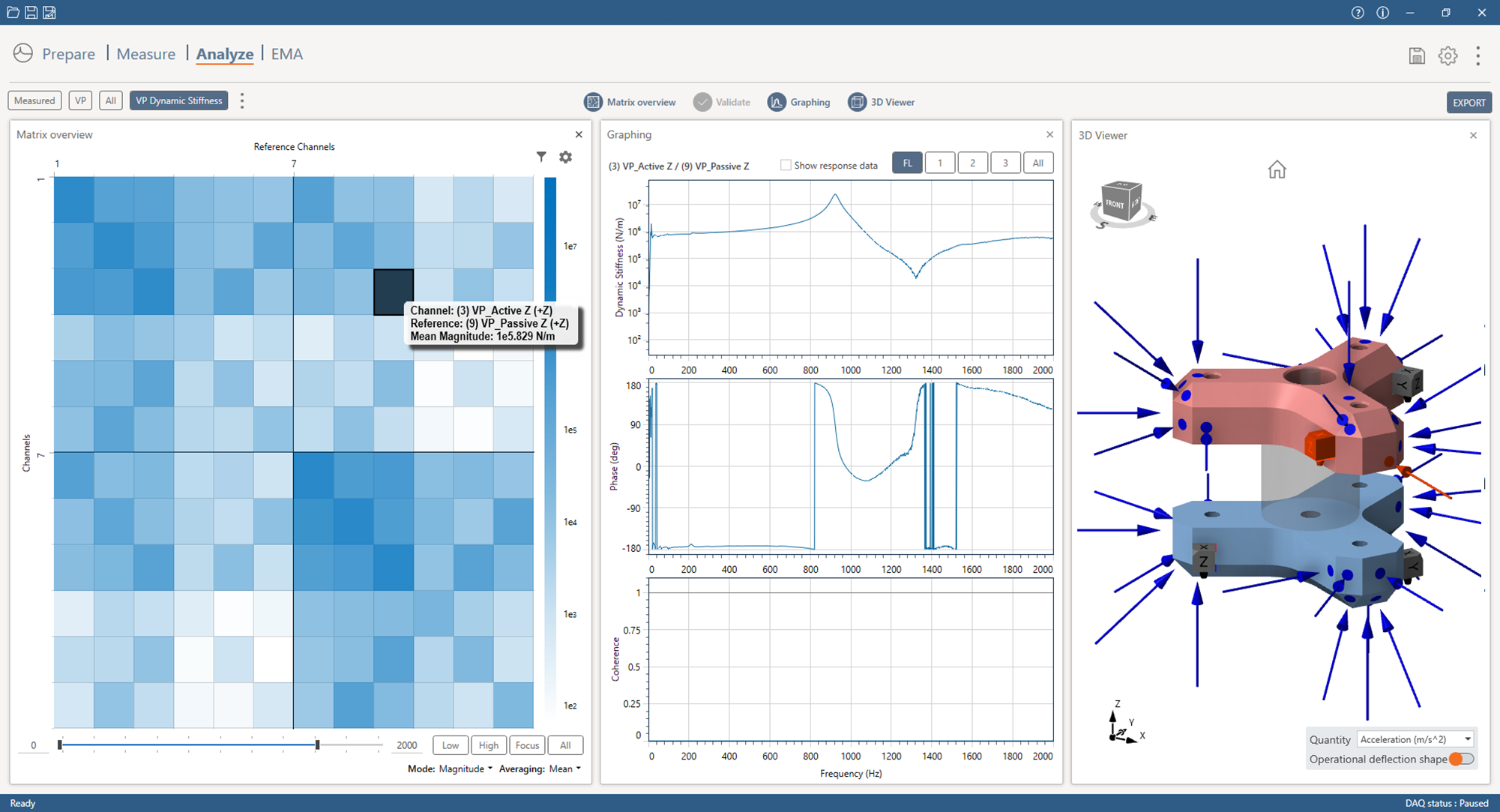 From design of experiment to model validation, DIRAC covers the full FRF measurement workflow on passive structures. It combines advanced measurement workflows with the Virtual Point Transformation (VPT) — a technology built on deep knowledge and strong implementation that transforms sensor-level FRFs into interface-level models, independent of sensor position and orientation. Built-in quality indicators at every stage — from design of experiment through to the final model — give engineers confidence that results are right before they reach downstream simulation. By directly linking high-quality test data with simulation models, DIRAC enables engineers to assess model accuracy, avoid common measurement pitfalls, and extract more value from every measurement.