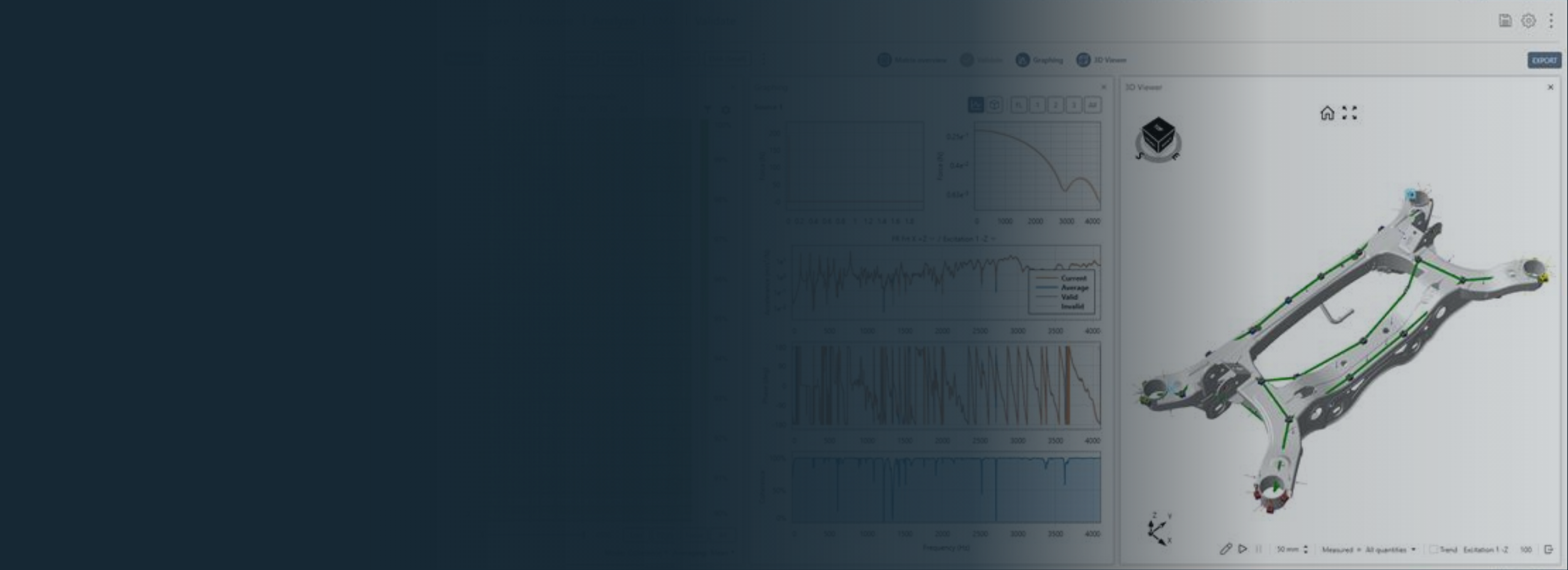 Test-based Modelling allows for modeling the frequency response behavior of passive components or systems using accurate test data. You can create structural dynamical models with complete interface descriptions, identify robust structural-acoustic transfer functions, and extract mass, center of gravity, and inertia (MCI) properties for subsequent analyses. Furthermore, you can identify accurate 6-DoF dynamic stiffness of rubber mounts and use Hybrid Modular Modelling to combine test-based and numerical models to obtain frequency response functions of complex assemblies. The following workflows and software unlock the full potential of this solution.